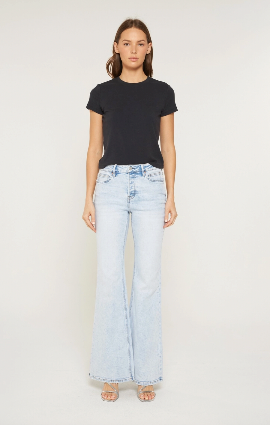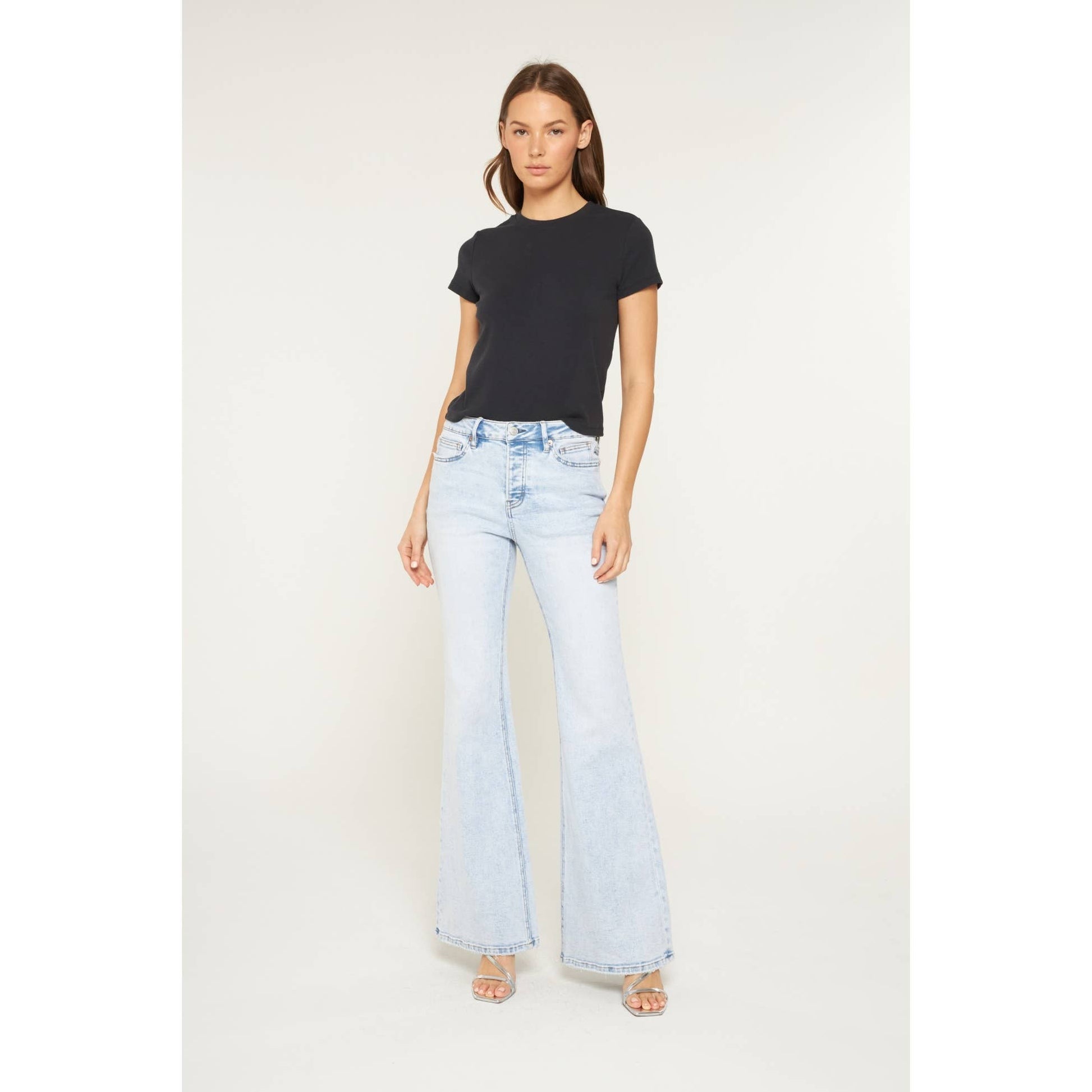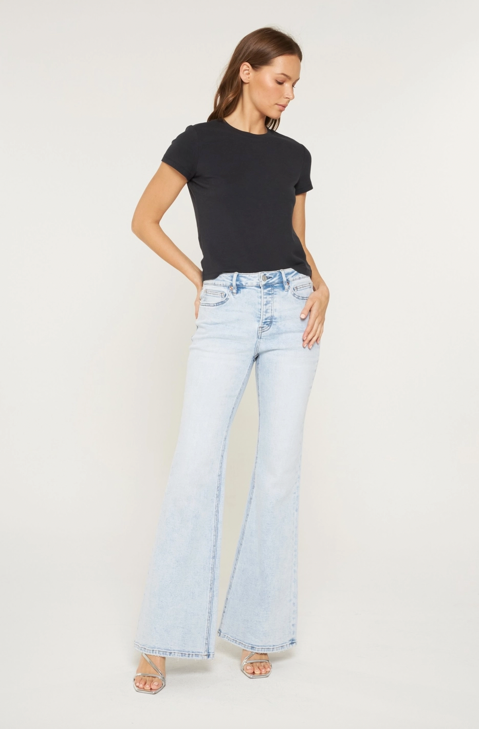 These jeans are sleek and flattering and feature a smooth hidden-button front for a clean look. They are easy through the hip with an elegant flare that you'll fall in love with.